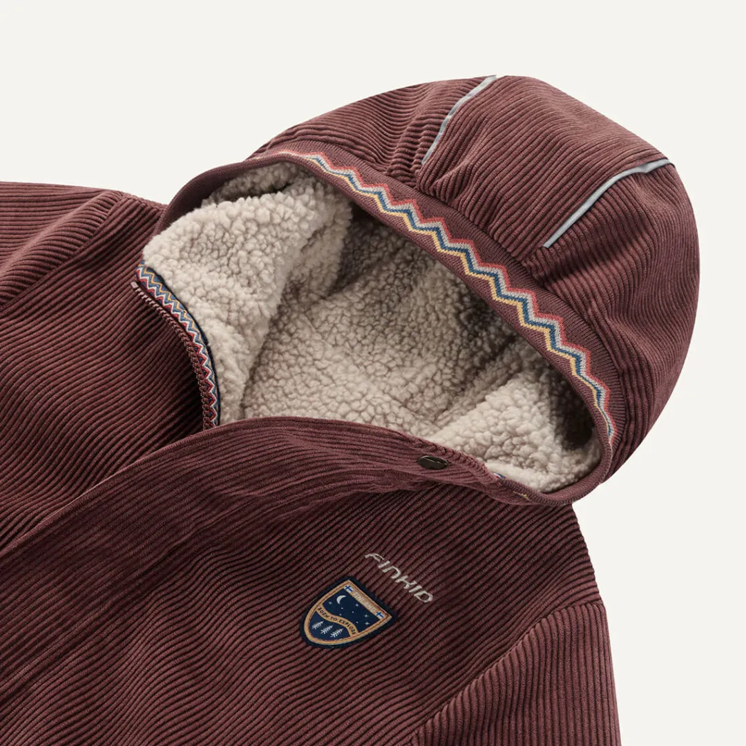 JUURI CORD ist eine wendbare Kordjacke für Kinder mit liebevollen finnischen Folksy Details, die Funktion und Stil perfekt verbindet. Die Jacke ist wasserfest, winddicht, atmungsaktiv und wärmeisolierend – ideal für die kühle Jahreszeit. Versiegelte Nähte und die robuste Verarbeitung sorgen für zuverlässigen Wetterschutz. Die Innenseite ist aus kuscheligem Teddyfleece für eine Extraportion Gemütlichkeit ob innen oder außen. Ab Größe 120/130 ist JUURI CORD mit einer runden Kapuze ausgestattet. Hergestellt aus umweltfreundlichen Materialien mit PFC-freier Ausrüstung. Erhältlich in den Größen 90/100 bis 140/150. Von finkid®.
