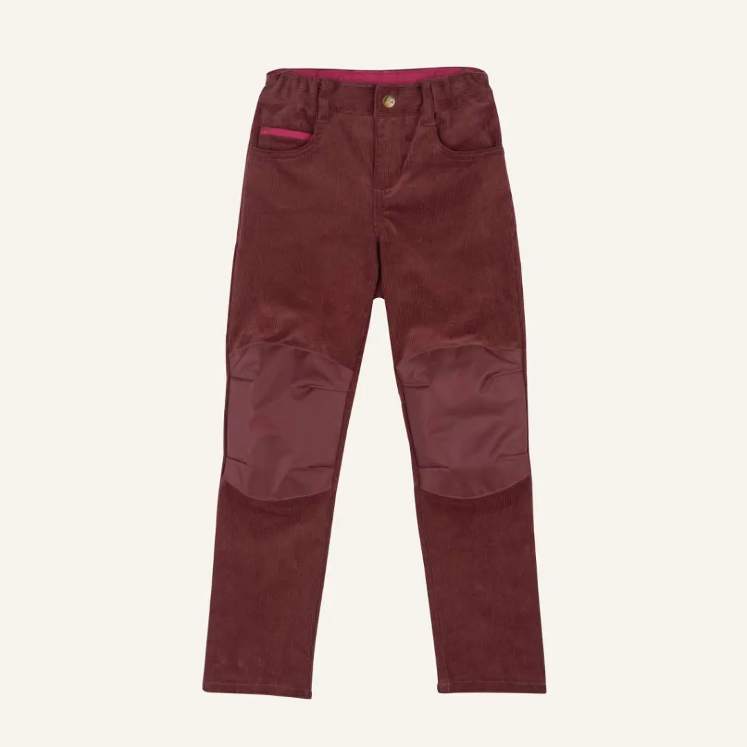Schmale Five Pocket Kordhose mit unifarbenen, ovalen Kniebesätzen. Die Knieabnäher formen das Bein vor und unterstützen so die Bewegungsfreiheit. Im hinteren Bund sorgt ein Gummizug für Halt, die Hose ist aber auch mit Gürtel tragbar. Der krempelbare Saum ermöglicht eine individuelle Anpassung der Hosenlänge. Saumaufschlag sowie rechte Tasche und rückwärtiger Bund sind kontrastierend eingefasst.