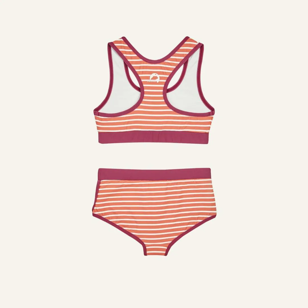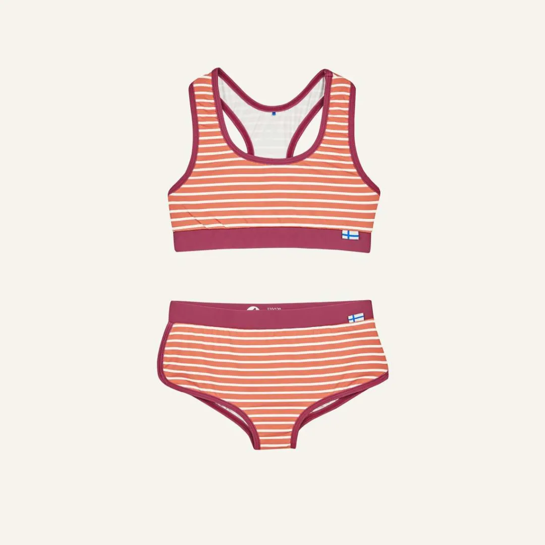 Am Strand ist einfach alles besser. Oder im Schwimmbad. Oder am See. Und mit dem LUOTO Bikini Set stimmt dabei auch das Outfit. Das zweiteilige Set aus Oberteil und Pants gibt es in zwei verschiedenen Ringelmustern, das Material ist schnelltrocknend und mit Lichtschutzfaktor 50+ versehen. Perfekt für lange Sommertage am Wasser.
