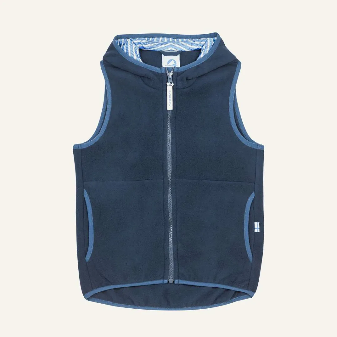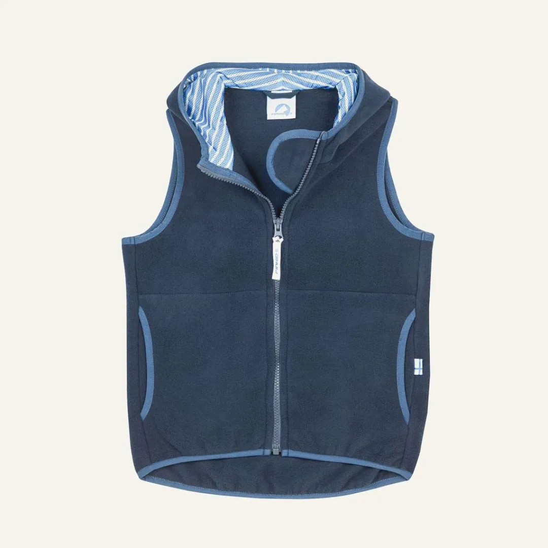 Himmelblau-weiß gestreift wie das Innenfutter der Kapuze – die Weite von Himmel und Strand sind immer mit dabei, wenn POPPELI ausgeführt wird. Unsere Fleeceweste mit der finkid Zwergenkapuzewärmt den Rumpf und lässt den Armen alle Freiheit – zum Buddeln, Muschelsuchen und Keschern. Meshfutter. Auch als Zip In Innenjacke kombinierbar.