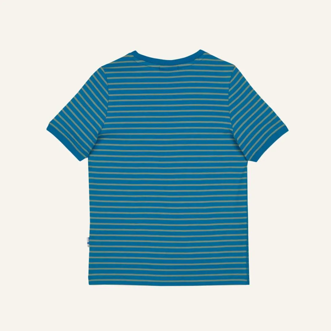 Anliegend geschnittenes T-Shirt mit Rundhals und schmalen Rippbündchen. In fröhlichem Ringeljersey oder mit Tier-Print ein echter finkid-Klassiker. Die Ziernähte an den Seiten verleihen den finkid-typischen Farbkontrast.