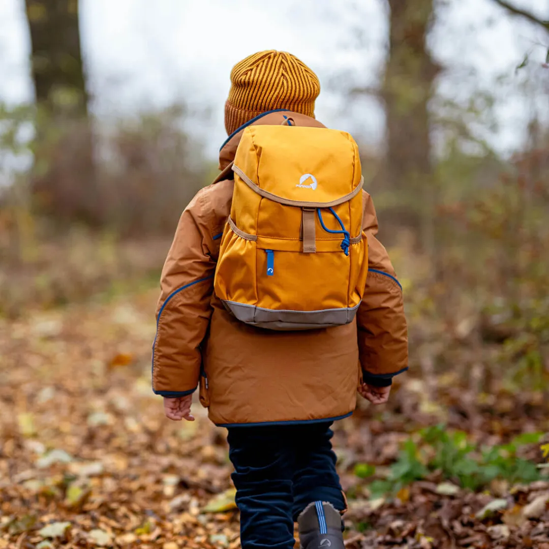 Durch Dick und Dünn geht dieser durchdachte und robuste Rucksack mit. Auf einem stabilen, wasserfesten Boden finden sich praktische Seitenfächer für die Trinkflasche oder kleine Fundstücke. Der besondere Clou sind der Frontverschluss, welcher als Pfeife benutzt werden kann, die weiche Sitzunterlage zum Herausnehmen und das integrierte Schlüsselband. Gut gepolsterte Tragegurte sorgen für bequemen Sitz, die Reflektorpaspeln für gute Sichtbarkeit. Aus wasser- und schmutzabweisendem Oberstoff und mit einem großen innenseitigen Namensschild.