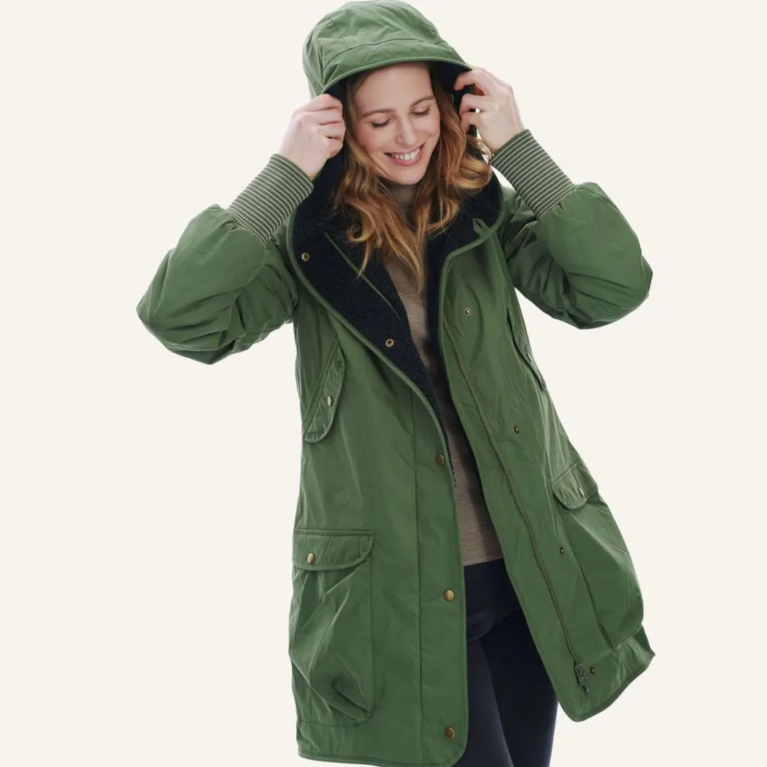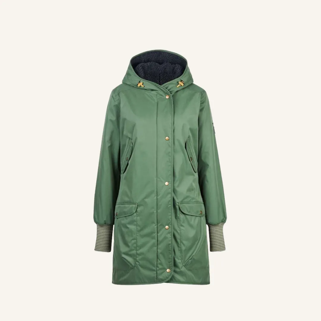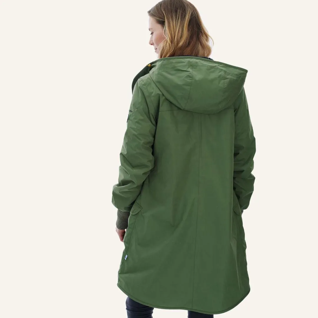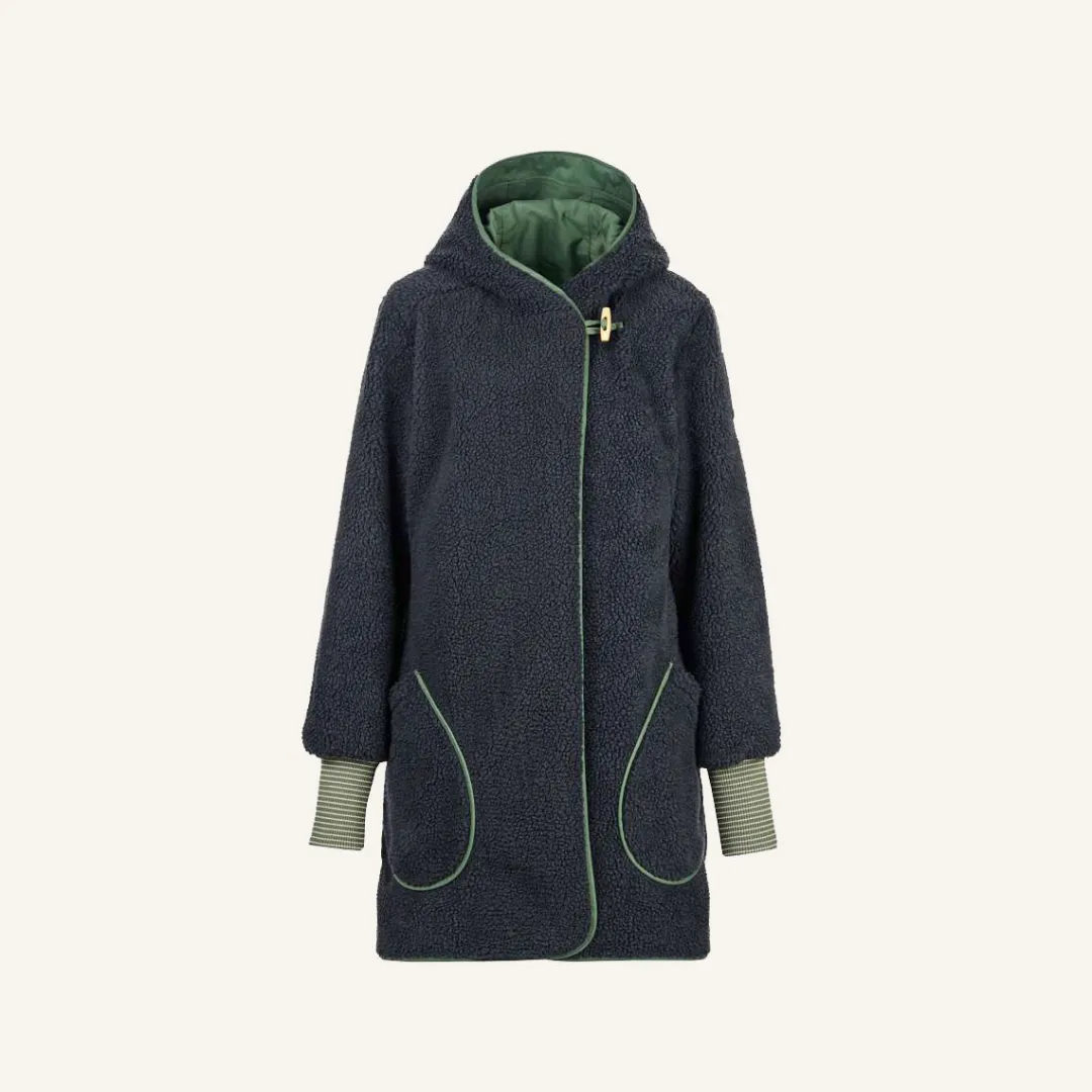 So vielseitig wie du ihn haben willst: Dieser Wendemantel begleitet dich durch den Herbst mit einer Seite aus wasserabweisendem Gewebe und der anderen aus wärmendem Teddyfleece. Lange Rippbündchen an den Ärmeln geben Schutz inmitten von Wind und Wetter. Figurnah geschnitten und mit einer gut abschließenden Kapuze schmiegt sich SUOMUKKA an deinen Körper an und folgt mit der geschwungenen Saumlinie dem Fluss deiner Energie.