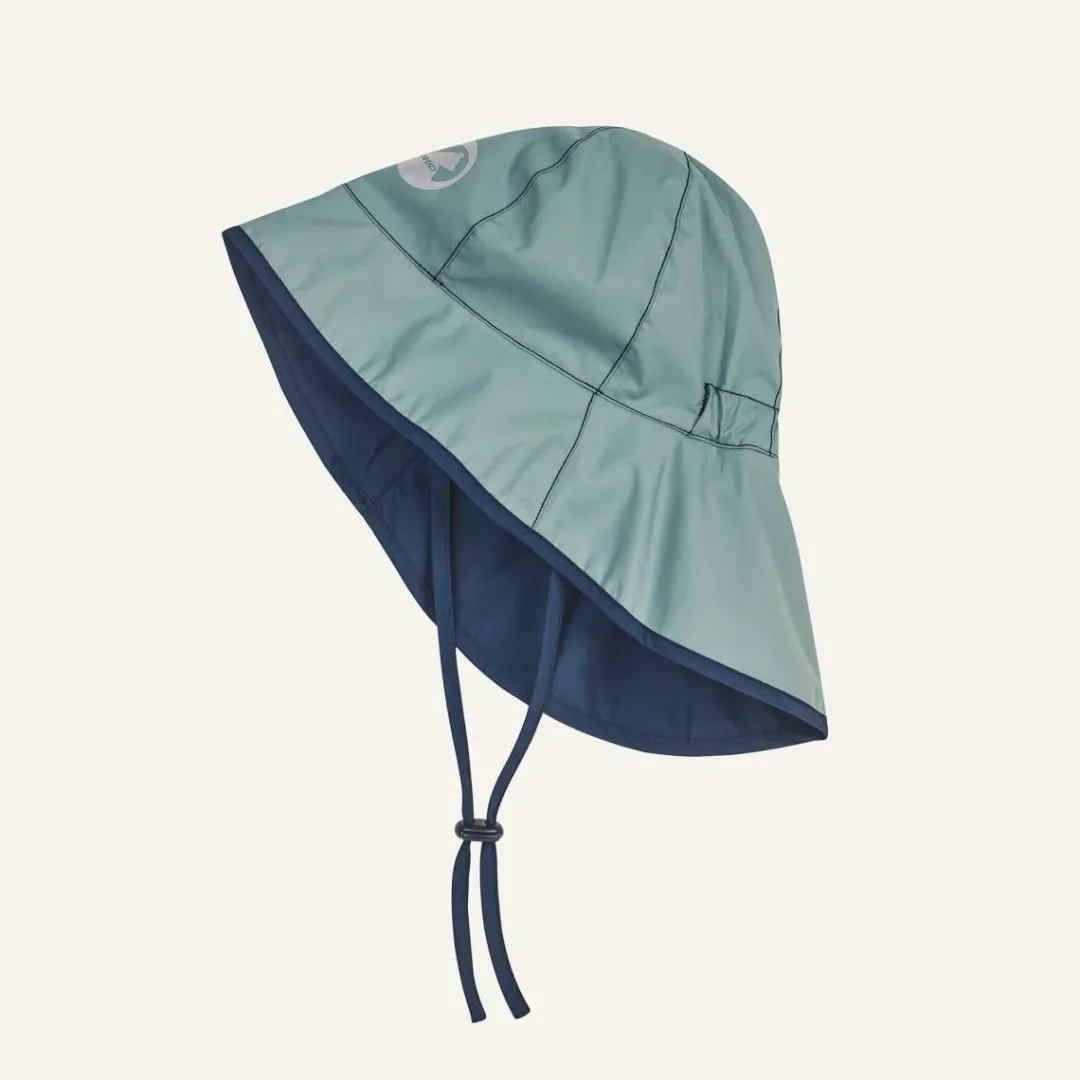 Winddicht, wasserfest, atmungsaktiv: Mit dem Regenhut TIHKU auf dem Kopf bleibt kein Kind freiwillig zuhause, da locken Schlick und Schlamm und Krabbenkutter. Und mit dem Kordelstopper unterm Kinn darf der Wind auffrischen, wie er will – der Hut sitzt immer fest und sicher.