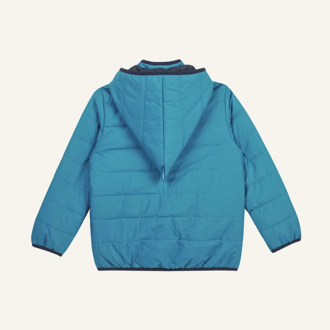 Manchmal muss es etwas mehr sein. Und dann wieder etwas weniger. Diese leichte Steppjacke ist perfekt, wenn Herbst- und Winterwetter sich mal wieder nicht entscheiden können. Das atmungsaktive Material (Oberstoff aus recyceltem Polyester) und die Kapuze wärmen an milderen Tagen, wenn es frostig wird, lässt sich die Jacke als Zip in Innenjacke einsetzen.