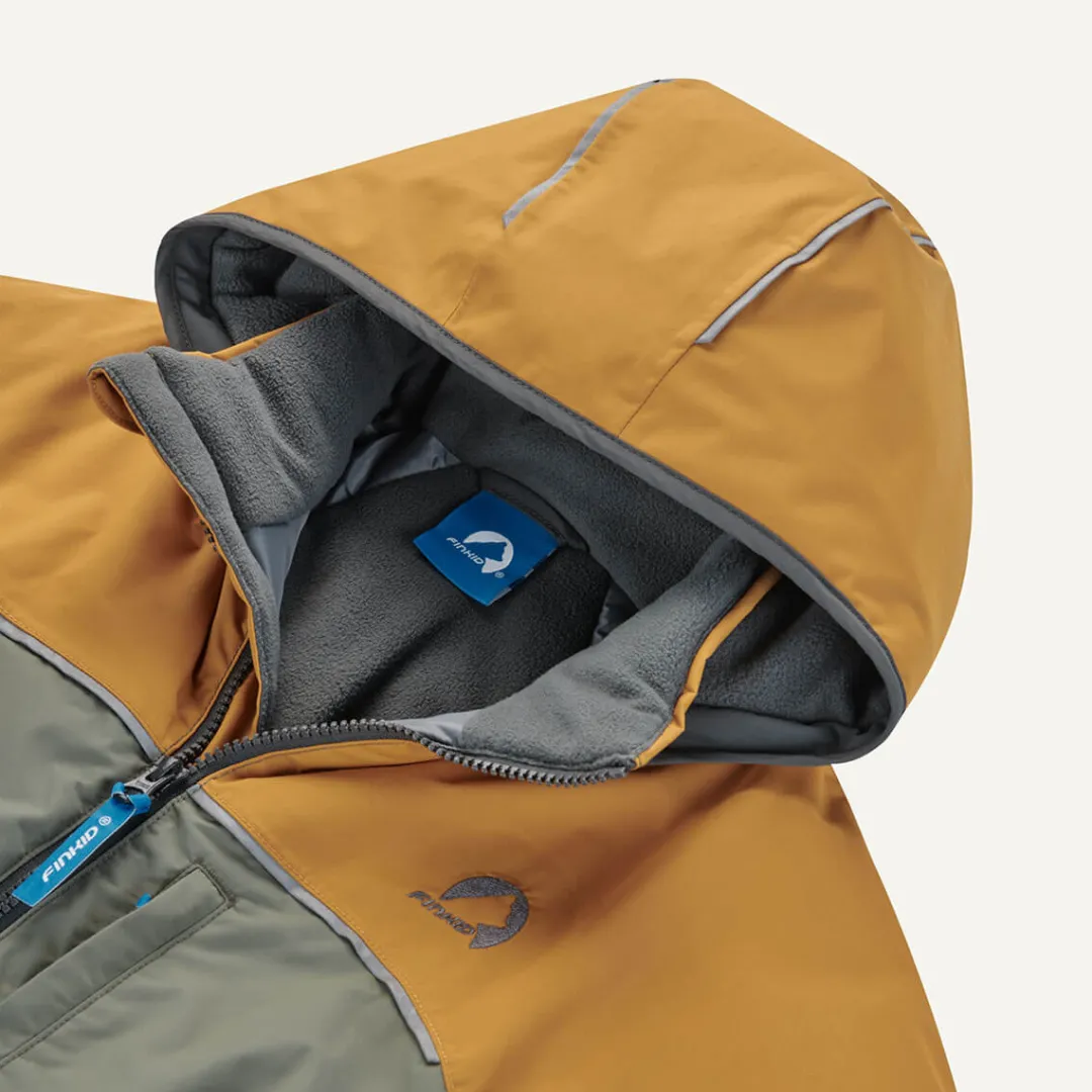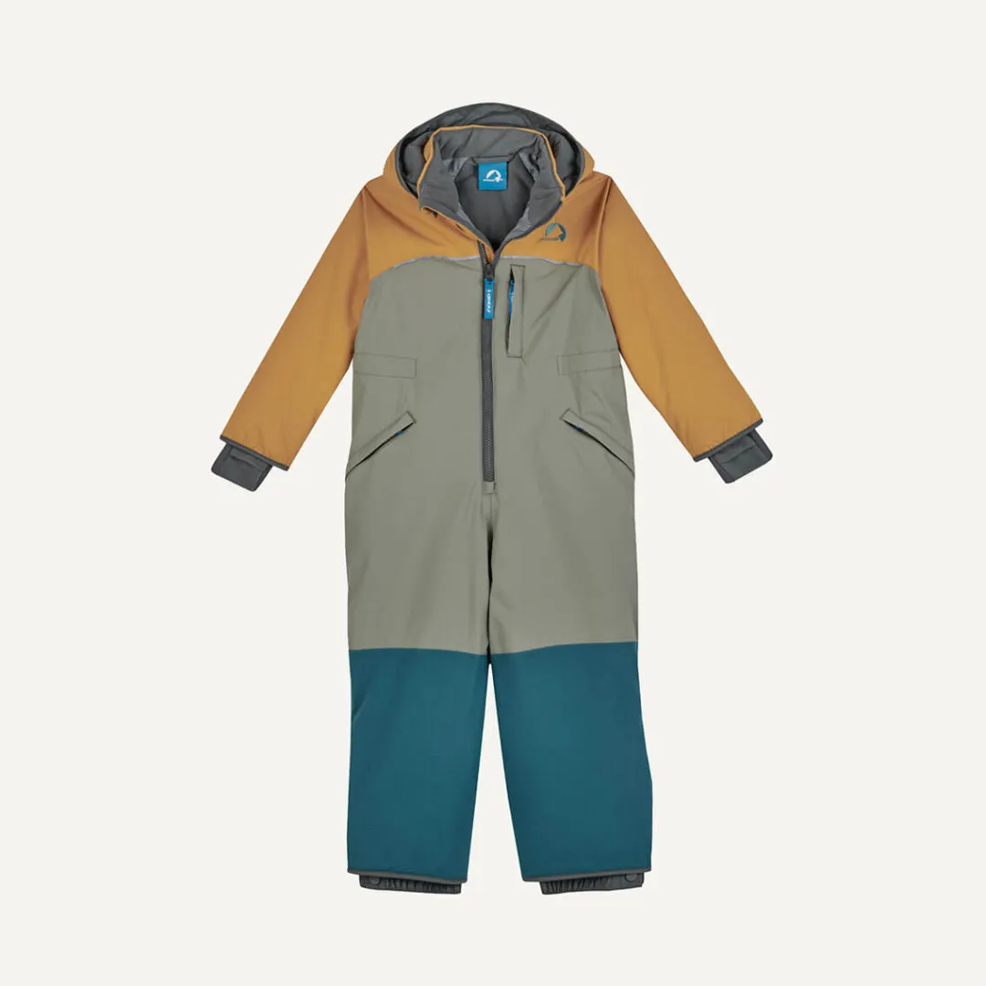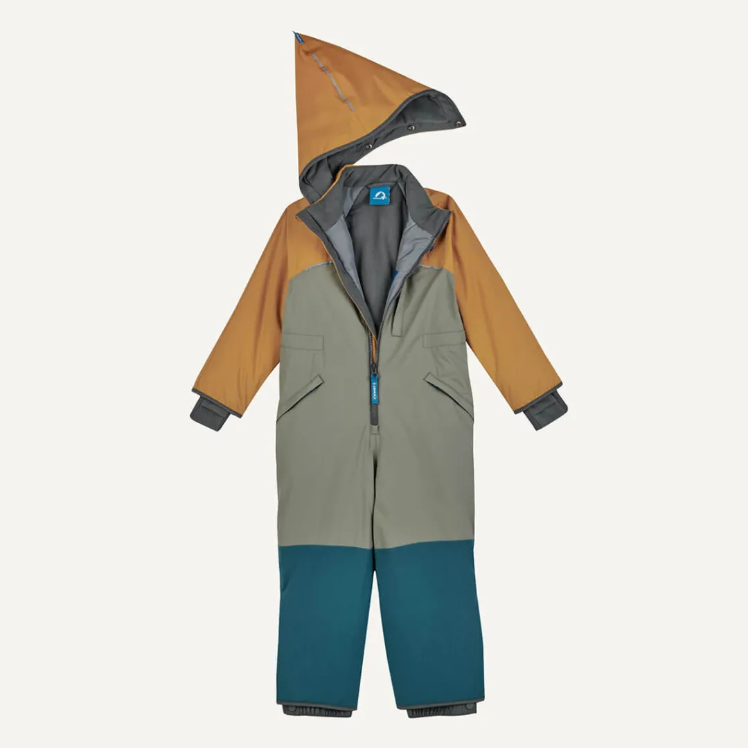 VILKAS SNOW ist ein funktionaler Wintersportoverall für Kinder im sportlichen Colorblocking-Design, perfekt für aktive Schneetage. Die abnehmbare Kapuze mit integriertem Hoodshield, weiche Ärmelbündchen mit Daumenlöchern und der integrierte Schneefang an den Beinabschlüssen verhindert das Eindringen von Schnee – selbst beim Rodeln, Skifahren oder Herumtoben. Mit extra Skipasstasche am linken Oberarm, robusten Po- und Knieverstärkungen, versiegelten Nähten sowie wärmeisolierendem, wasser- und winddichtem Material bietet der Overall rundum Schutz. Atmungsaktiv, PFC-frei und aus umweltfreundlichen Materialien gefertigt. Ab Größe 120/130 mit runder Kapuze. Größen: 90/100 bis 140/150. Von finkid®.