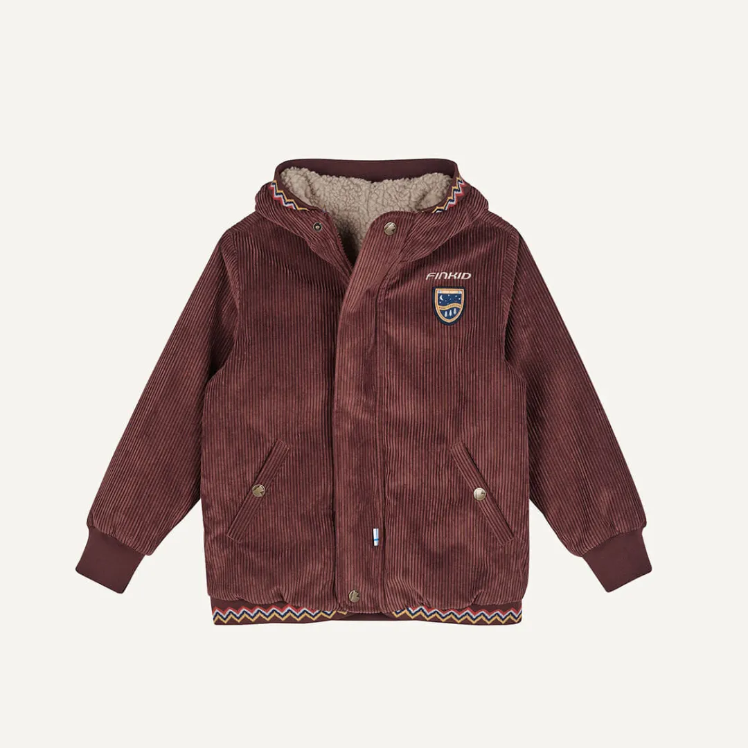 JUURI CORD ist eine wendbare Kordjacke für Kinder mit liebevollen finnischen Folksy Details, die Funktion und Stil perfekt verbindet. Die Jacke ist wasserfest, winddicht, atmungsaktiv und wärmeisolierend – ideal für die kühle Jahreszeit. Versiegelte Nähte und die robuste Verarbeitung sorgen für zuverlässigen Wetterschutz. Die Innenseite ist aus kuscheligem Teddyfleece für eine Extraportion Gemütlichkeit ob innen oder außen. Ab Größe 120/130 ist JUURI CORD mit einer runden Kapuze ausgestattet. Hergestellt aus umweltfreundlichen Materialien mit PFC-freier Ausrüstung. Erhältlich in den Größen 90/100 bis 140/150. Von finkid®.