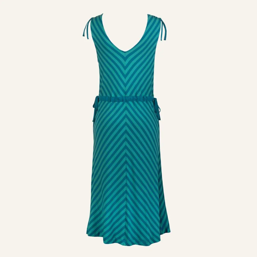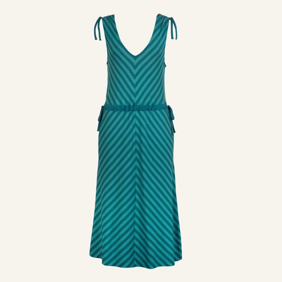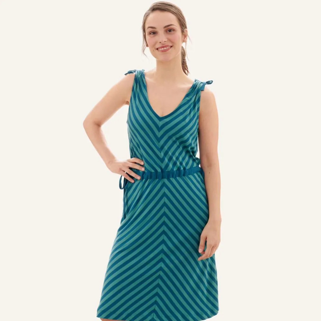 Das SOLMU Sommerkleid aus gestreiftem Bambusjersey ist die ideale Wahl für sonnige Tage. Hergestellt aus umweltfreundlicher Bambus-Viskose mit einem Hauch Elasthan, bietet es ein weiches Tragegefühl und maximale Bewegungsfreiheit. Kühlend und atmungsaktiv sorgt es für angenehmen Komfort, selbst an warmen Tagen. Das zeitlose Streifenmuster und der schmeichelhafte Schnitt machen es zum perfekten Begleiter für Freizeit, Urlaub oder den Alltag. Stilvoll, nachhaltig und bequem – das SOLMU Kleid vereint Mode und Umweltbewusstsein.