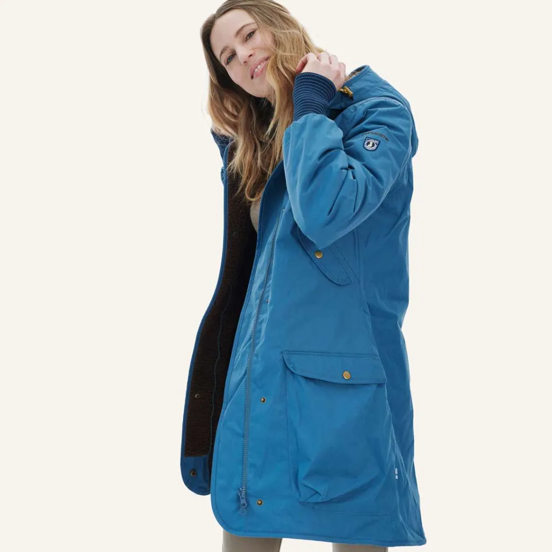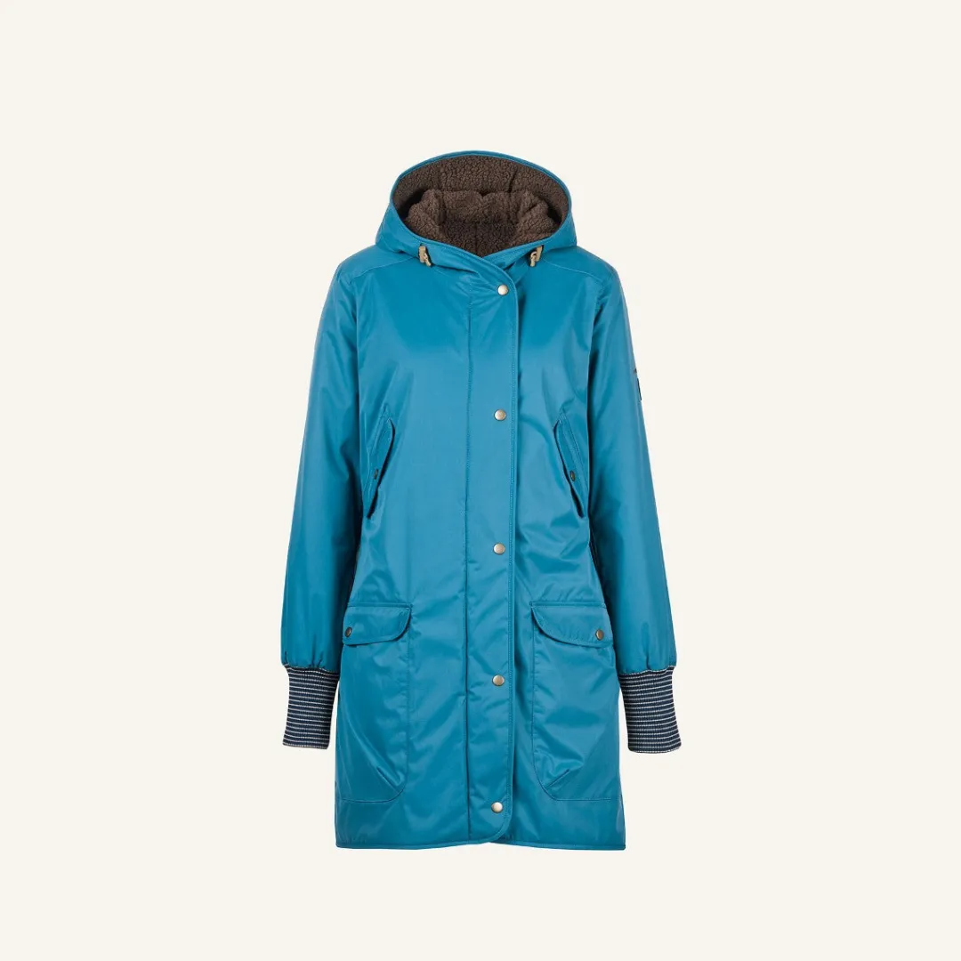 So vielseitig wie du ihn haben willst: Dieser Wendemantel begleitet dich durch den Herbst mit einer Seite aus wasserabweisendem Gewebe und der anderen aus wärmendem Teddyfleece. Lange Rippbündchen an den Ärmeln geben Schutz inmitten von Wind und Wetter. Figurnah geschnitten und mit einer gut abschließenden Kapuze schmiegt sich SUOMUKKA an deinen Körper an und folgt mit der geschwungenen Saumlinie dem Fluss deiner Energie.